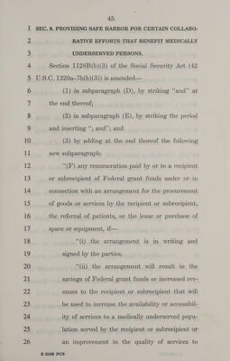 Credit: A bill to amend the Public Health Service Act and the Social Security Act to provide improved and exppanded access to comprehensive health care and related services for medically underserved and vulnerable populations through the provision of financial support for the development of community-based health networks and plans ... : short title.- This act may be cited as the "Access to community health care act of 1994". Source: Wellcome Collection.