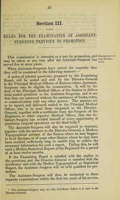 Credit: Qualifications and examination of candidates for commissions in the Army Medical Servce ; Organization of the practical Army Medical School, including the subjects to be taught by the professors : and, Rules for the examination of assistant-surgeons previous to promotion. Source: Wellcome Collection.