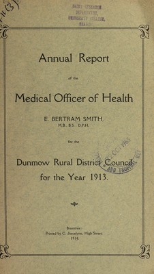 Credit: [Report 1913] / Medical Officer of Health, Dunmow R.D.C. Source: Wellcome Collection.