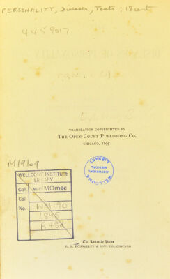 Credit: The diseases of personality / by Th. Ribot ; authorised translation. Source: Wellcome Collection.