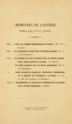 Credit: De l'arsenic dans la pathologie du système nerveux : son action dans l'ètat nerveaux : la chlorose, les névralgies et les névroses particulières, l'adynamie et l'ataxie liées aux maladies aigues, la cachexie des maladies chroniques : étude sur la médication arsenicale / par Charles Isnard. Source: Wellcome Collection.