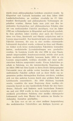 Medizinische Lyzeen : ein Beitrag zur Geschichte des medizinischen Unterrichtes in Österreich / von I. Fischer.