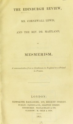 The Edinburgh Review, Mr. Cornewall Lewis, and the rev. Dr. Maitland on mesmerism : a communication from a gentleman in England to a friend in France.