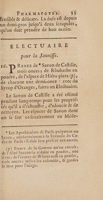 Credit: Abregé de la medecine pratique, ou nouvelle pharmacopée, contenant, en raccourci, tout ce qui est essentiel & nécessaire pour remplir toutes les vûes d'un médecin pour la guérison des maladies ... / avec un commentaire [by J. Theobald] ... Ouvrage composé par l'ordre de son Altesse Royale le duc de Cumberland par ... le chirurgien général & l'apothicaire général de l'armée du roi d'Angleterre. Traduit de l'anglois, et enrichi de notes, par Monsieur D. M[agenis] [i.e. Daniel Magenise] etudiant en médecine. Source: Wellcome Collection.