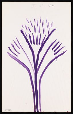 Credit: Purple v-shapes nested, with spiky finials, and a purple tree shape with spiky finials. Source: Wellcome Collection.