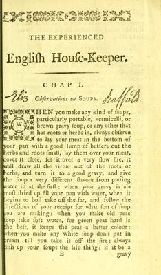 Credit: The experienced English housekeeper : for the use and ease of ladies, housekeepers, cooks, &c. Written purely from practice .... Consisting of near nine hundred original receipts, most of which never appeared in print ... [etc.]. Source: Wellcome Collection.