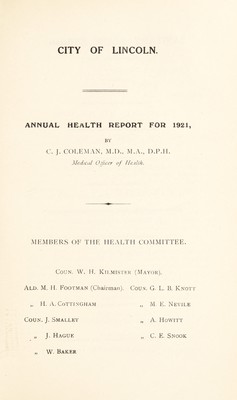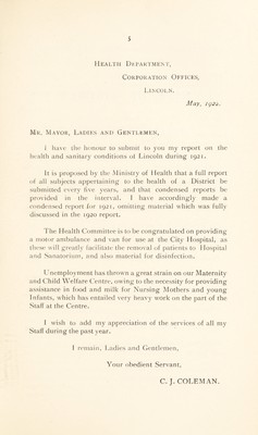 [Report 1921] / Medical Officer of Health, Lincoln City.