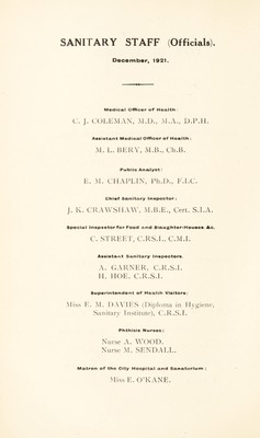 Credit: [Report 1921] / Medical Officer of Health, Lincoln City. Source: Wellcome Collection.