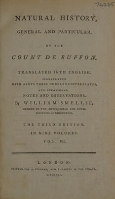 Natural history, general and particular / by the Count de Buffon, translated into English, illustrated with above three hundred copper-plates, and occasional notes and observations. By William Smellie.