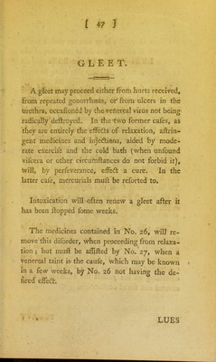 Credit: Medical strictures, being a concise and effectual method of treating the following diseases : colds, ague, small pox, measles, hooping cough, worms, piles, uterine and nervous affections, consumption, asthma, dropsy, gravel, stone, rheumatism, gout, gonorrhea, gleet, lues venerea, scurvy, scrophula, cancer and white swelling : in which the means of prevention, palliation, and cure, are distinctly pointed out, and the whole adapted to general comprehension / by Richard Clarke. Source: Wellcome Collection.