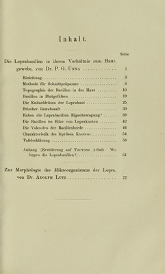 Die Lepra-Bacillen in ihrem Verhaltnis zum Hautgewebe. Mit einer chromolithographischen Tafel / von P. G. Unna.