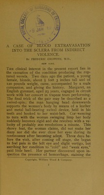 Credit: A case of blood extravasation into the sclera from indirect violence / by Frederic Griffith. Source: Wellcome Collection.