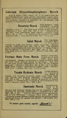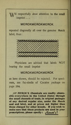 Credit: Merck's 1901 manual of the materia medica : aready-reference pocket book for the practicing physician and surgeon. Source: Wellcome Collection.