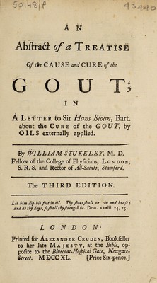 An abstract of a treatise of the cause and cure of the gout; in a letter to Sir Hans Sloan ... about the cure of the gout, by oils externally applied / [William Stukeley].
