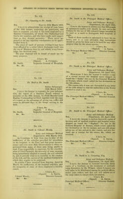 Report of the Commissioners appointed to inquire into the regulations affecting the sanitary condition of the army, the organization of military hospitals, and the treatment of the sick and wounded ; with evidence and appendix. Presented to both Houses of Parliament by Command of Her Majesty.