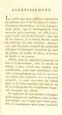 Précis d'expériences et observations sur les différentes espèces de lait, considérées dans leurs rapports avec la chimie, la médecine et l'économie rurale / par A. Parmentier et N. Déyeux.