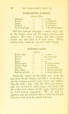 Credit: The mem sahib's book of cakes, scones, biscuits, &c : contains 166 recipes / by Carrie Cutcrewe. Source: Wellcome Collection.