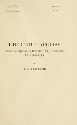 L'hérédité acquise : ses conséquences horticoles, agricoles et médicales / par M.-J. Costantin.