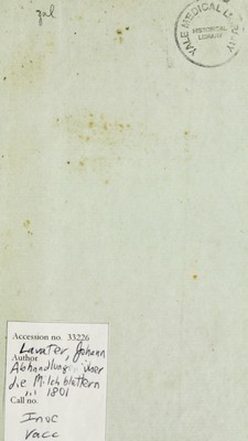 Abhandlung über die Milchblattern oder die sogenannten Kuhpocken : einer leichten und gefahrlosen Krankheit, die auf eine zuverlässige Art vor den Pocken verwahren soll / von Johann Heinrich Lavater.