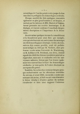 Credit: De la coexistence des anévrysmes miliaires du cerveau avec des altérations vasculaires analogues généralisées : thèse pour le doctorat en médecine présentée et soutenue le 17 février 1870 / par Henry Liouville. Source: Wellcome Collection.