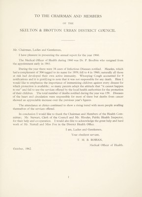 Credit: [Report 1960] / Medical Officer of Health, Skelton & Brotton U.D.C. Source: Wellcome Collection.