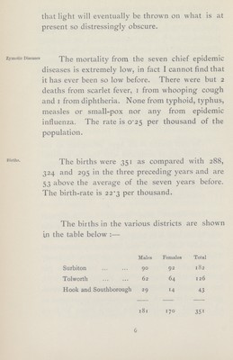 Credit: [Report of the Medical Officer of Health for Surbiton]. Source: Wellcome Collection.