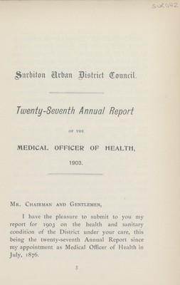 [Report of the Medical Officer of Health for Surbiton].
