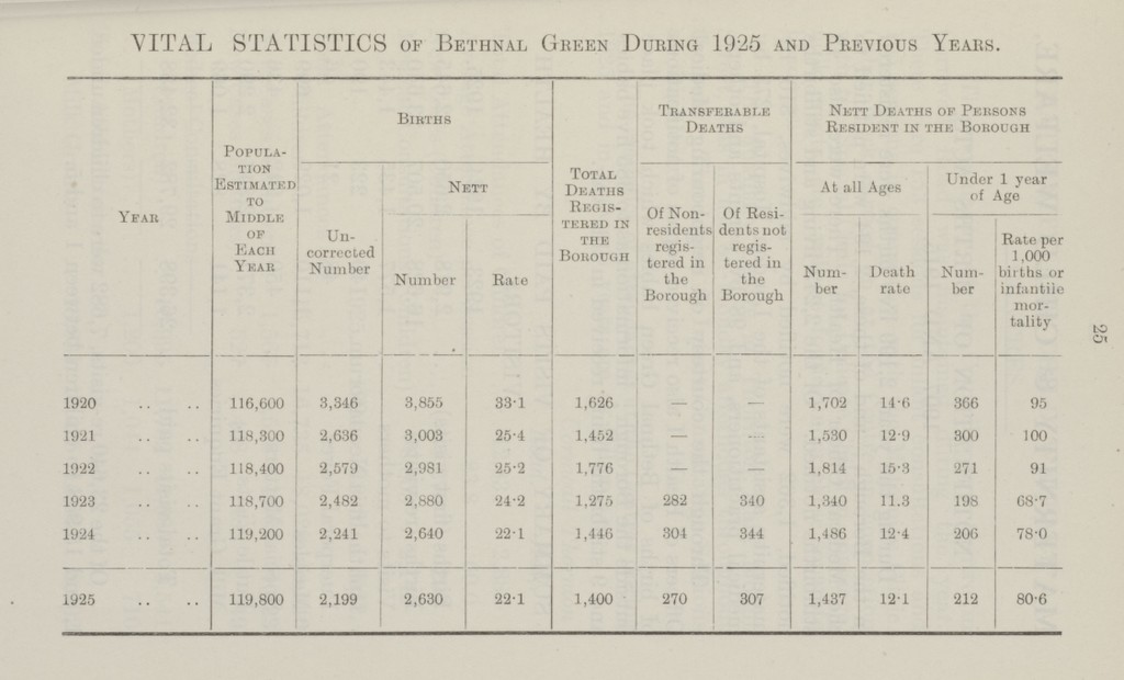 Credit: [Report on the health of the Borough of Bethnal Green during the year 1925]. Source: Wellcome Collection.