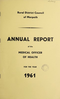 Credit: [Report 1961] / Medical Officer of Health, Morpeth R.D.C. Source: Wellcome Collection.