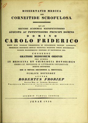 Credit: Dissertatio medica de corneitide scrofulosa ... / publice defendet auctor Robertus Froriep. Source: Wellcome Collection.