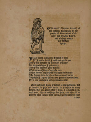 Credit: The Boke of the introduction of knowledge. The which doth teache a man to speake part of all maner of languages. and to knowe the vsage and fashion of al maner of coũtreys. And for to knowe the moste parte of all maner of coynes of money, ye which is curraunt in euery region / Made by Andrew Borde, of phisicke doctor. [London: W. Copland, 1562? STC 3385, facsimile reprint]. Source: Wellcome Collection.