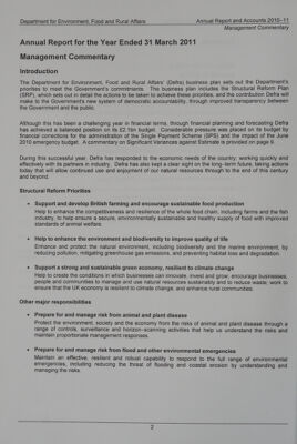 Departmental report : 2010-11 (DEFRA) / Department for Environment, Food and Rural Affairs and the Forestry Commission ; presented to Parliament by the Secretary of State for Environment, Food and Rural Affairs.