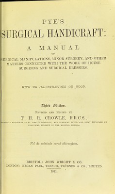 Pye's surgical handicraft : a manual of surgical manipulations, minor surgery and other matters connected with the work of house surgeons and surgical dressers / [Walter Pye].