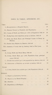 ![Annual Report Wm, ON THE w '■ ■ ■ Medical and Health Department 1949 [ Price: Re. 1.00] Printed and Published by J. Eliel Felix, Government Printer, Port Louis, Mauritius March 1951 No. 9 of 1951](https://iiif.wellcomecollection.org/image/b31484384_0001.jp2/full/800%2C/0/default.jpg)