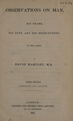 Observations on man, his frame, his duty, and his expectations / By David Hartley, M.D.