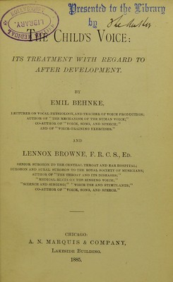 The child's voice : its treatment with regard to after development / by Emil Behnke and Lennox Browne.