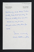 Provider: The original material is held at <a href="http://www.gla.ac.uk/services/archives/" rel="nofollow">Glasgow University Archive Services.</a> This catalogue is held by the Wellcome Library as part of Codebreakers: Makers of Modern Genetics.