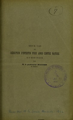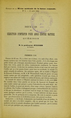 Deux cas de résection d'intestin pour anus contre nature / par M. le professeur Julliard.