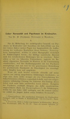 Ueber Nervosität und Psychosen im Kindesalter / von M. Friedmann.