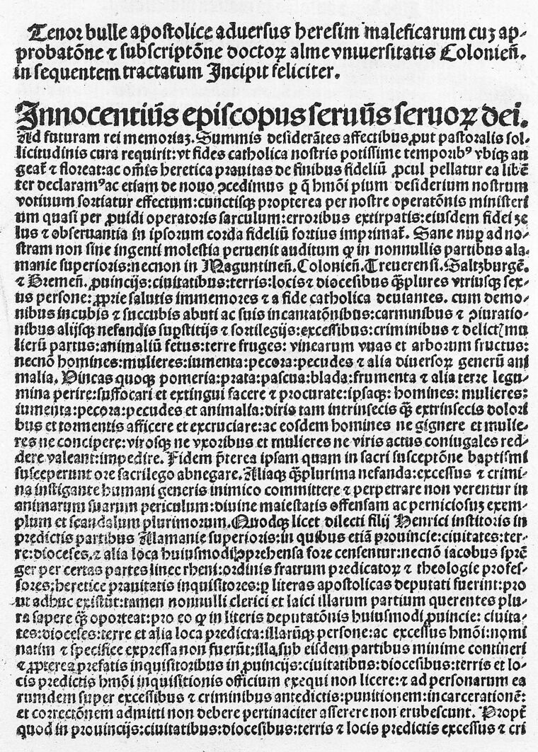 M0013811: Bull of Pope Innocent VIII from <i>Malleus maleficarum</i>, 1494. Public Domain Mark. Source: Wellcome Collection.