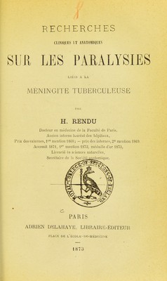 Credit: Recherches cliniques et anatomiques sur les paralysies liées à la méningite tuberculeuse / par H. Rendu. Source: Wellcome Collection.