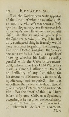 Credit: Remarks on the Reverend Dr. Hancocke's Febrifugum magnum. Wherein are shewn the absurdity and inconsistency of the Doctor's reasoning, and the inevitable danger consequent upon the use of cold water in fevers / By James Gardner. Source: Wellcome Collection.