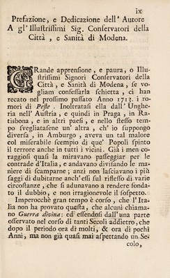 Del governo della peste, e delle maniere de guardarsene, trattato ... diviso in politico, medico, et ecclesiastico / [Lodovico Antonio Muratori].