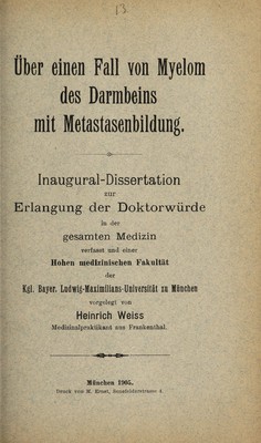 Über einen Fall von Myelom des Darmbeins mit Metastasenbildung ... / vorgelegt von Heinrich Weiss.
