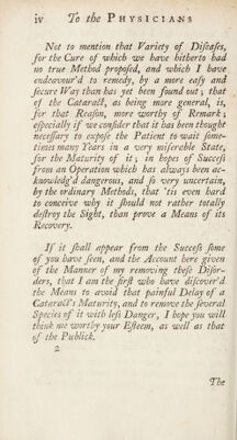 Credit: A new treatise on the diseases of the chrystalline humour of a human eye: or, of the cataract and glaucoma. With a new a theory of their causes, and an endeavour to demonstrate that there are no membranous cataracts; but that all cataracts are from an alteration of the chrystalline humour itself. With an exact description of a new and more successful method of making the operations necessary to the removal of the several species of these diseases. Humbly address'd to Her Majesty. To which is prefix'd, a Letter to the Physicians and Surgeons of London and Westminster ... / by John Taylor. Source: Wellcome Collection.