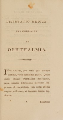 Disputatio medica inauguralis, de ophthalmia ... / Eruditorum examini subjicit Jacobus Niblock.