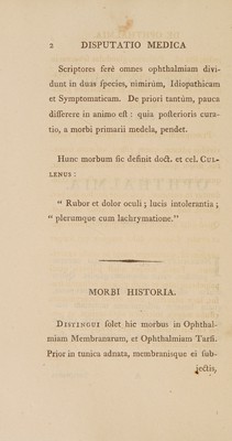 Credit: Disputatio medica inauguralis, de ophthalmia ... / Eruditorum examini subjicit Jacobus Niblock. Source: Wellcome Collection.