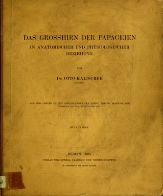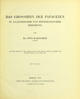 Das Grosshirn der Papageien in anatomischer und physiologischer Beziehung / von Otto Kalischer.