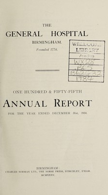 Credit: Annual report : 1934 / General Hospital Birmingham. Source: Wellcome Collection.