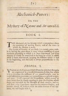 Credit: Mechanick powers; or, The mystery of nature and art unvail'd ... Together, with a treatise of circular motion artificially fitted to mechanick use, and the making of clock-work, and other engines ... The whole comprized in ten books, and illustrated with copper cuts / By Ven. Mandey, Philomat [and J. Moxon]. Source: Wellcome Collection.